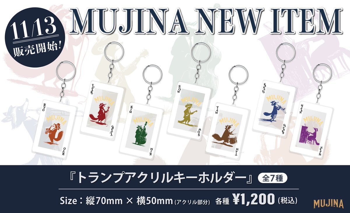 MUJINA 新グッズ公開! 今回のアクキーはトランプ柄✨️ 個人的にめっちゃ欲しい…! CDと小説がセットになってるのも MUJINAならではよね🦊 スウィングロックバンドMUJINAの世界観を 色んな形で楽しんでほしい!!! x.com/MUJINA_JPN/sta…